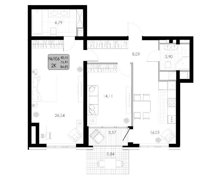 Планировки квартир представлены разнообразнейшие: от однокомнатной квартиры (в комплексе нет студий!) до просторной семейной резиденции. А на последних этажах расположатся пентхаусы, а также двухуровневые квартиры с видовыми террасами.