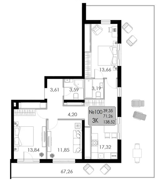 Все помещения предлагаются с предчистовой отделкой «white box». Высота потолков — порядка 3 метров, а панорамные окна и балконы-террасы выходят на море, что обеспечивает много света и живописные виды.