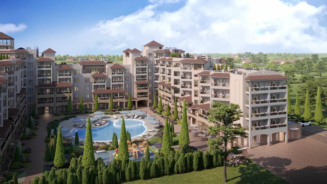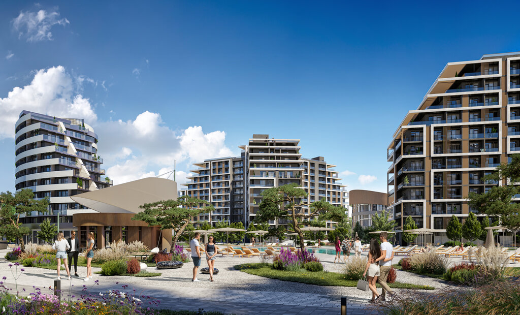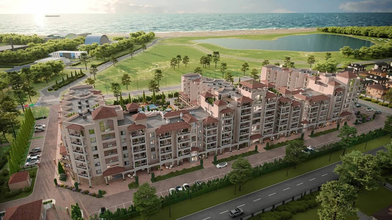 Закрытая благоустроенная охраняемая территория с прогулочным променадом, фонтанами, амфитеатром, зонами для отдыха, гриль-домиками и велодорожками, концепция "город в городе", парк-сад с бассейном, ресторанный дворик, детские и спортивные площадки, консьерж-сервис 24/7, разнообразная коммерция на территории - всё для Вашего комфортного отдыха и проживания на курорте, а также получения достойного инвестиционного дохода.